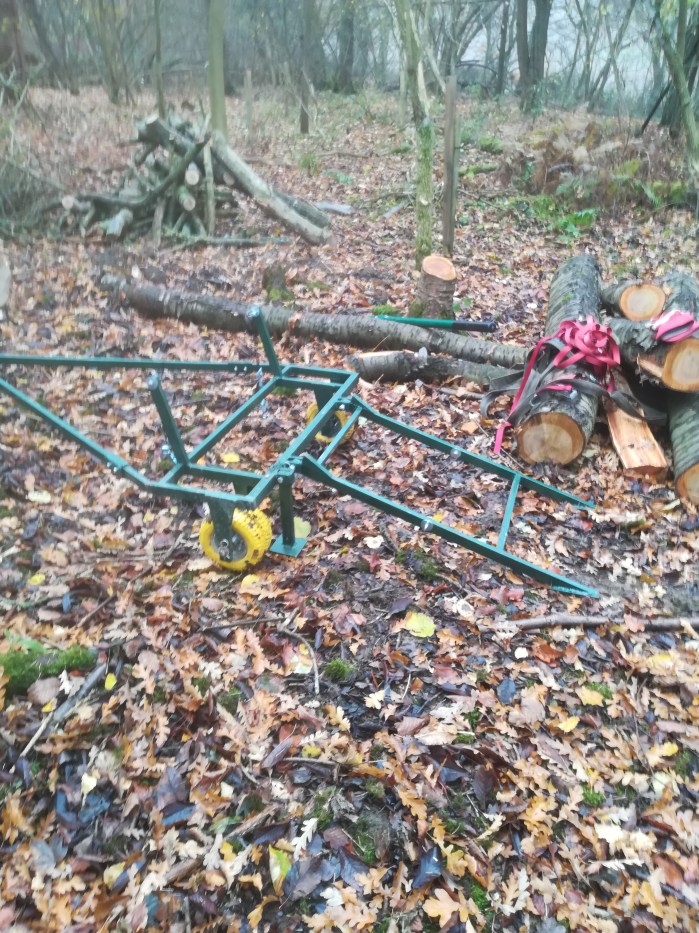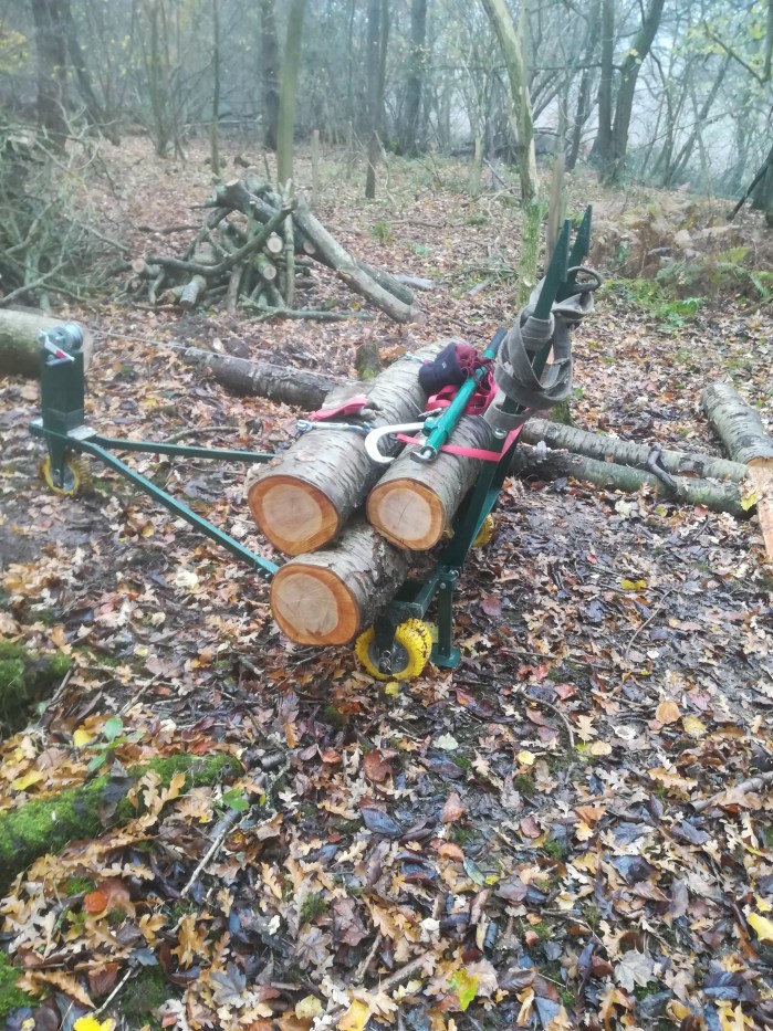 All that said leads to the need for a reasonably efficient method of moving the quite substantial logs from the bottom of the wood up the hill to the log store at the top of the wood. Oh if it was only the other way around and gravity could do most of the work!