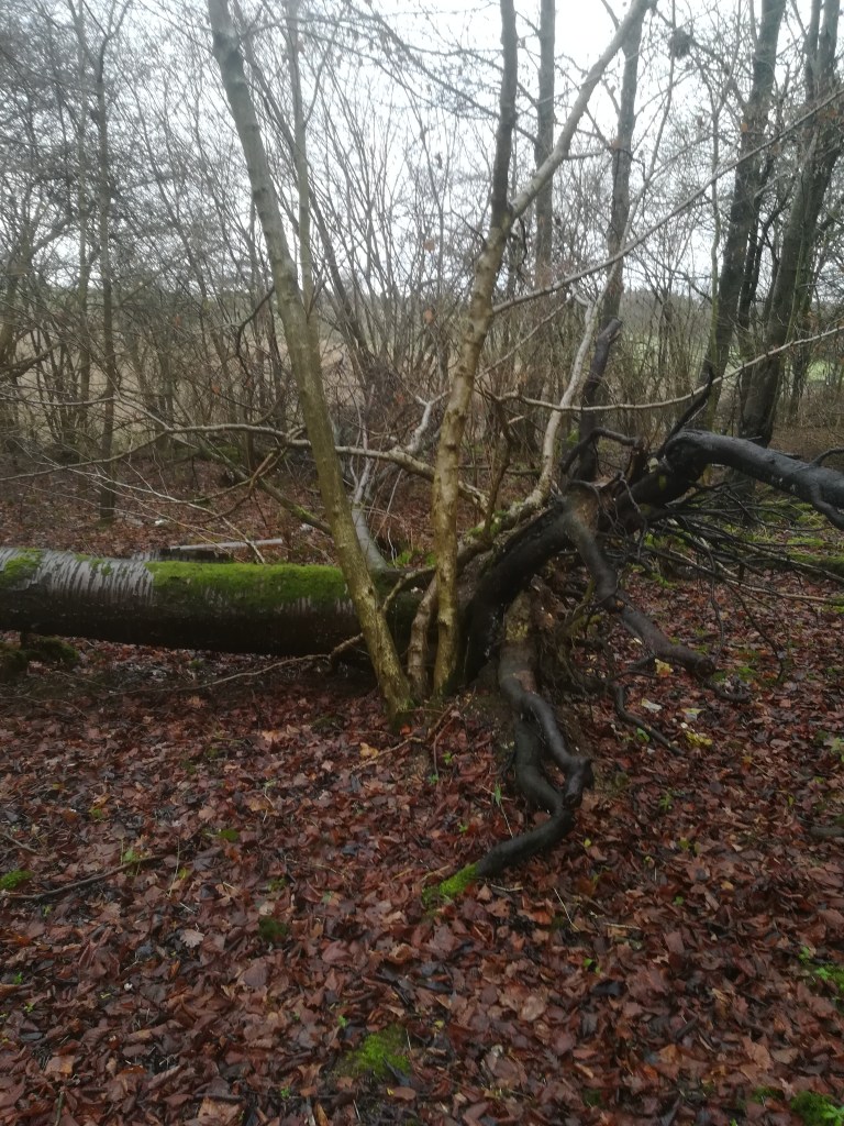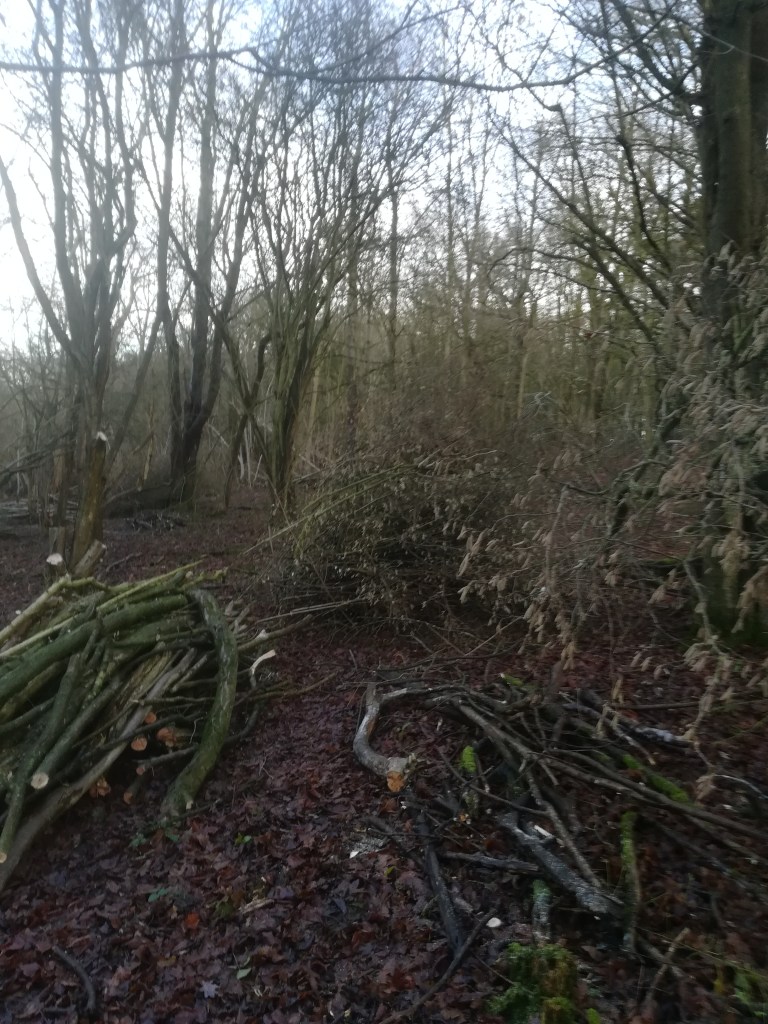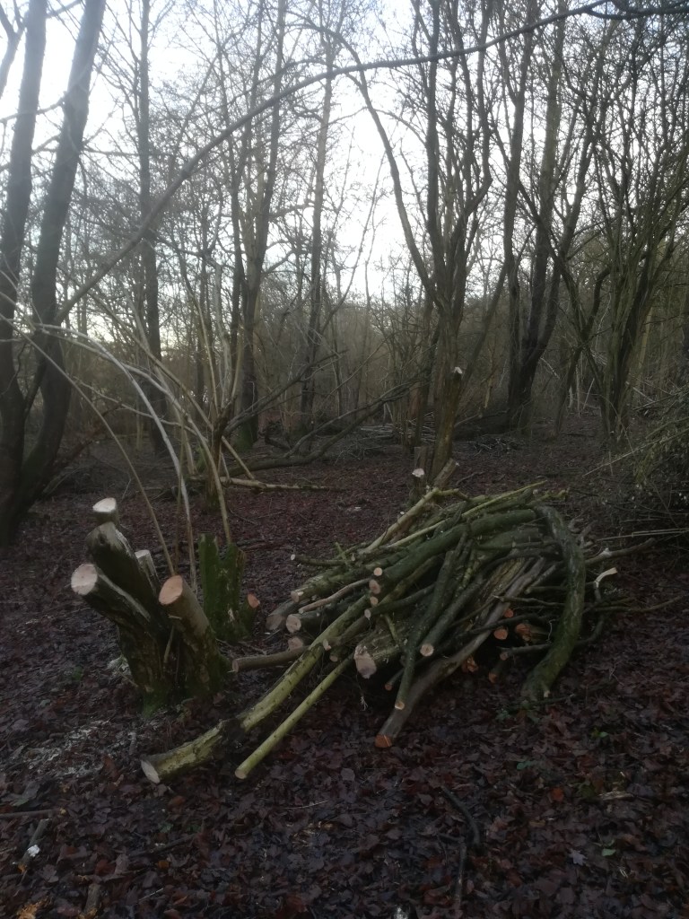 Some of the older trees such as the wild cherry have already begun to reach the end of their natural life and have fallen down. The picture below shows one that has fallen and “banjoed” a hazel stool on the way down. This will take some clearing up but I’ll tackle it in the new Year.
