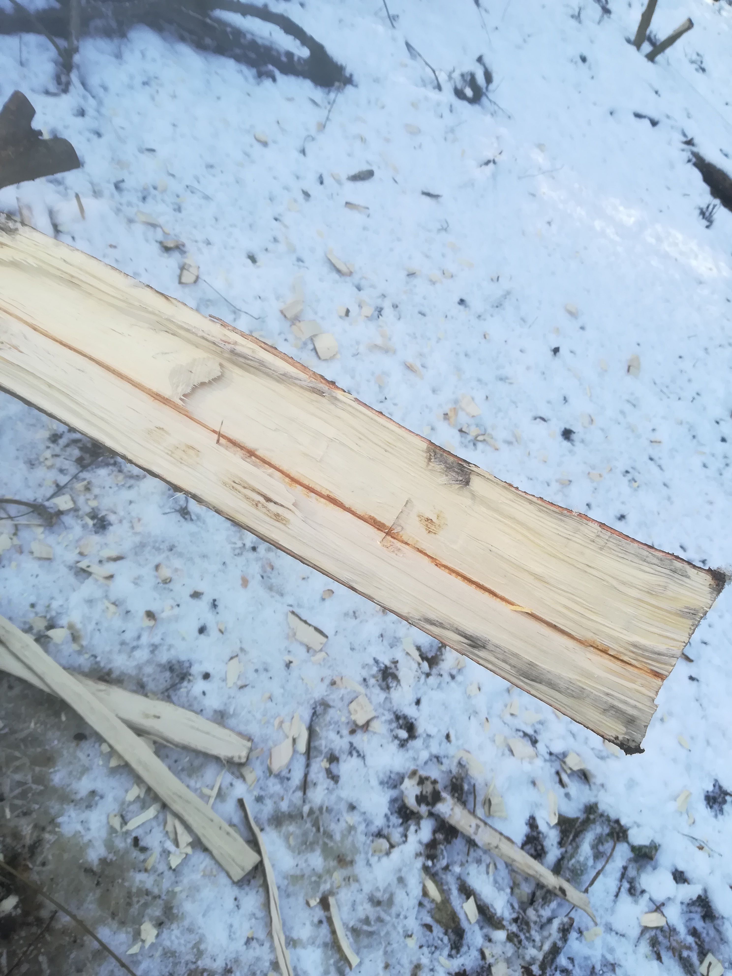 Next step is to start a split along the length of the stem, I use a fro which goes through the whole diameter and makes a good clean break. Next I insert a splitting wedge, this widens the gap so advancing the split down the length but also releases the fro.