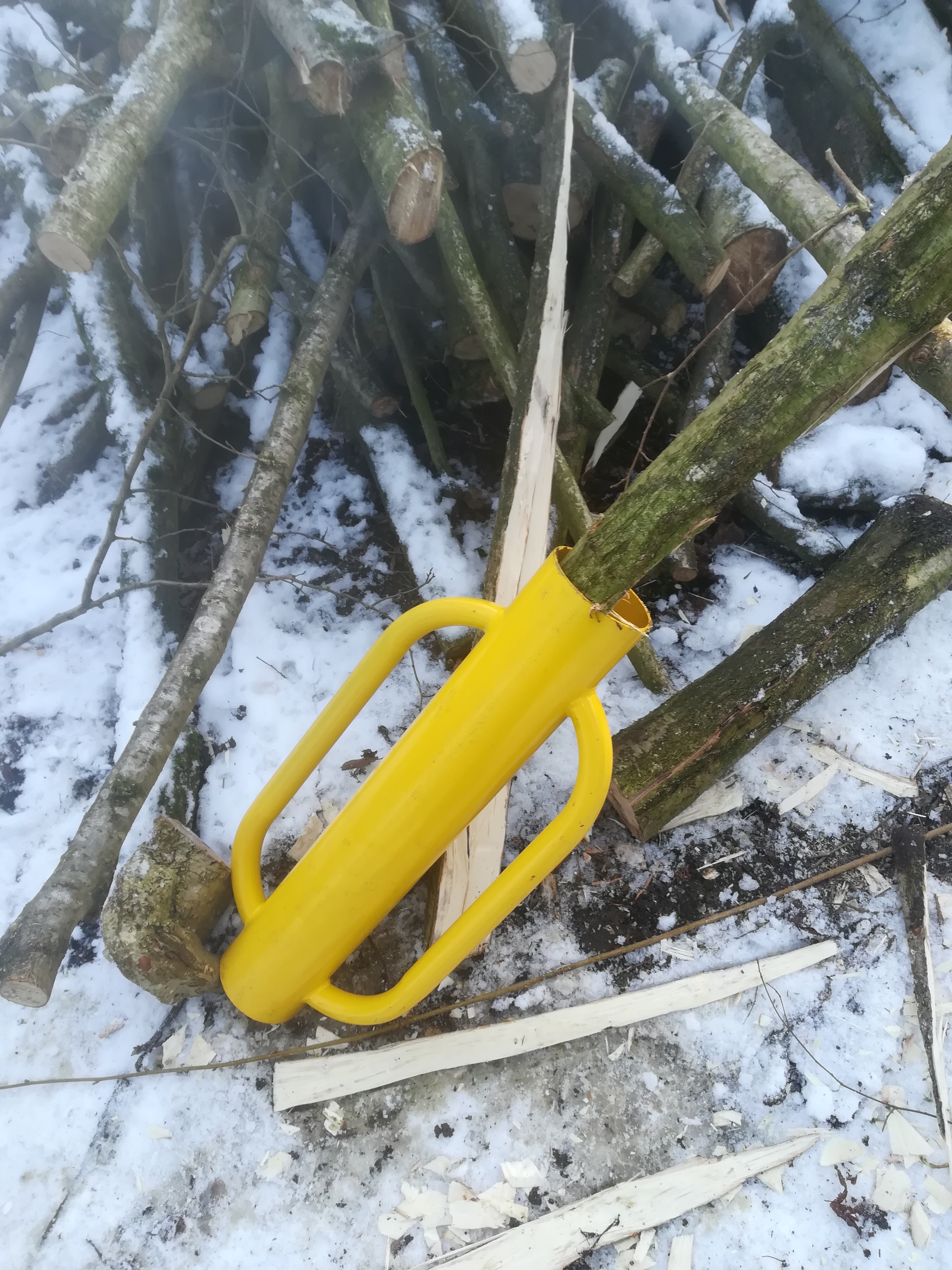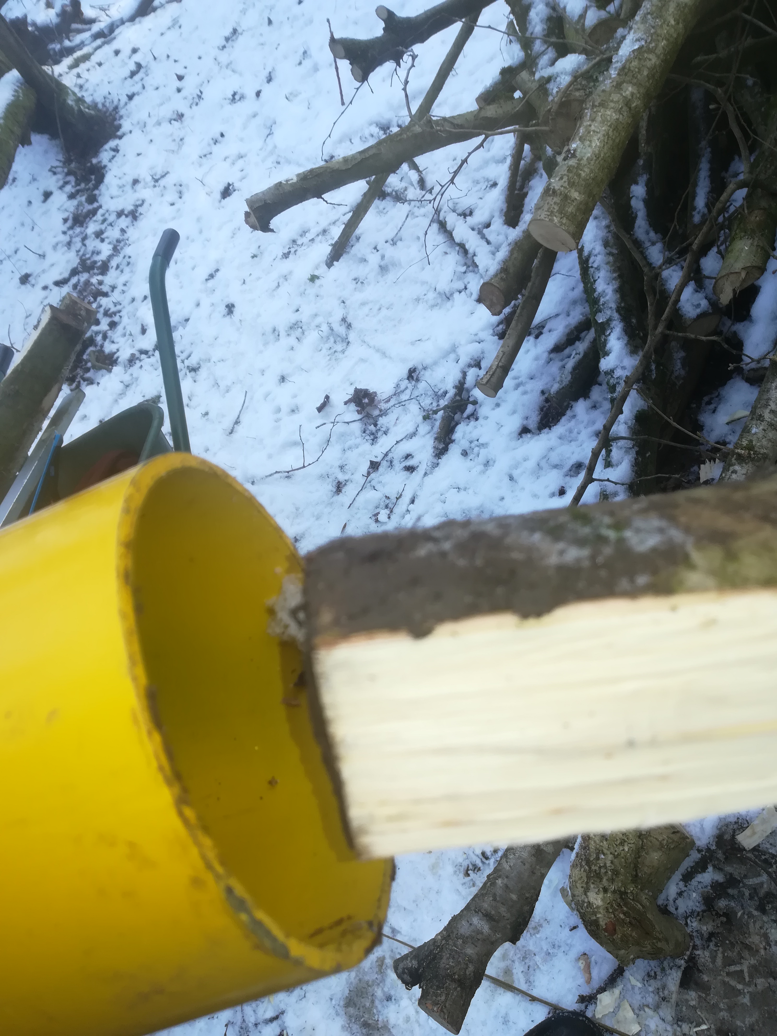 So far so good but it is now important to check that the other end of the post fits into the post rammer. That’s the big yellow tube with handles.