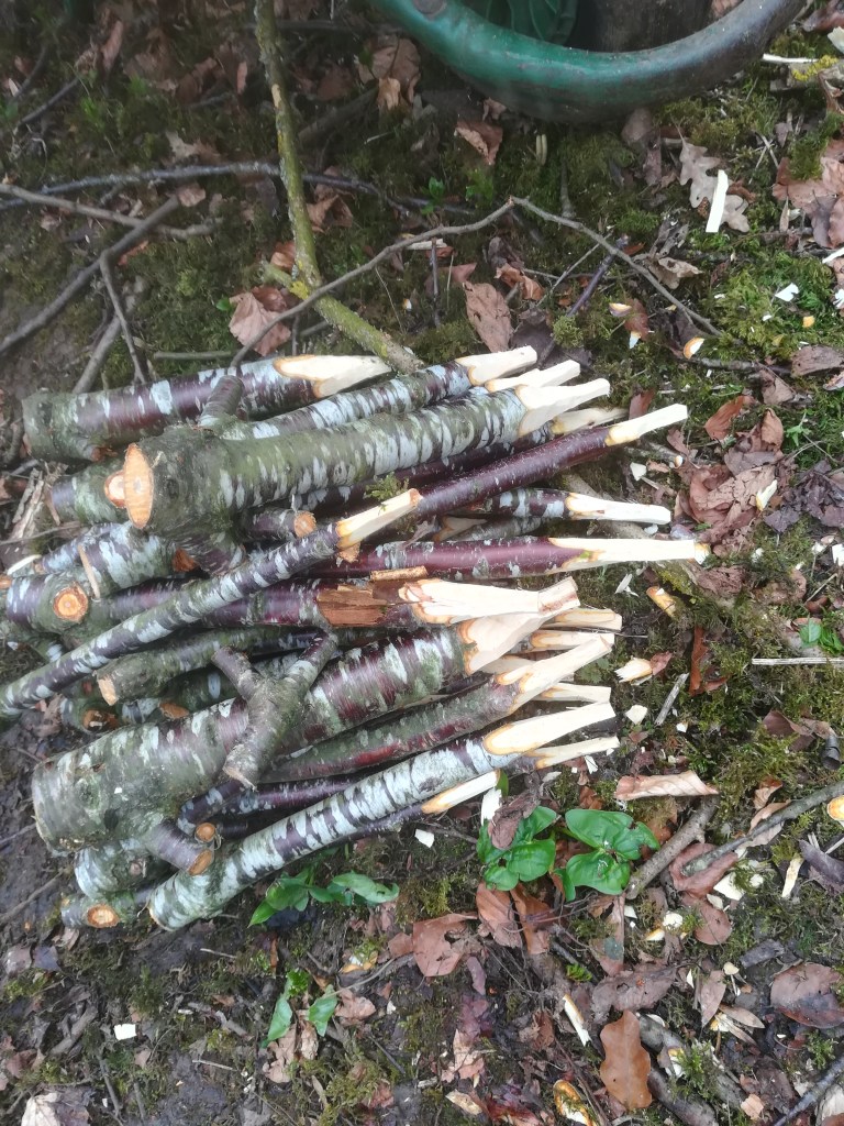 Having got the new plants in I have concentrated on finishing off layering those existing stools that looked healthy enough and now we are all set to watch as the coppice once more comes to life.