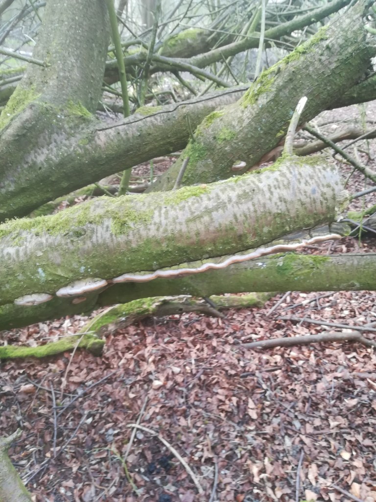 line of fungus along split